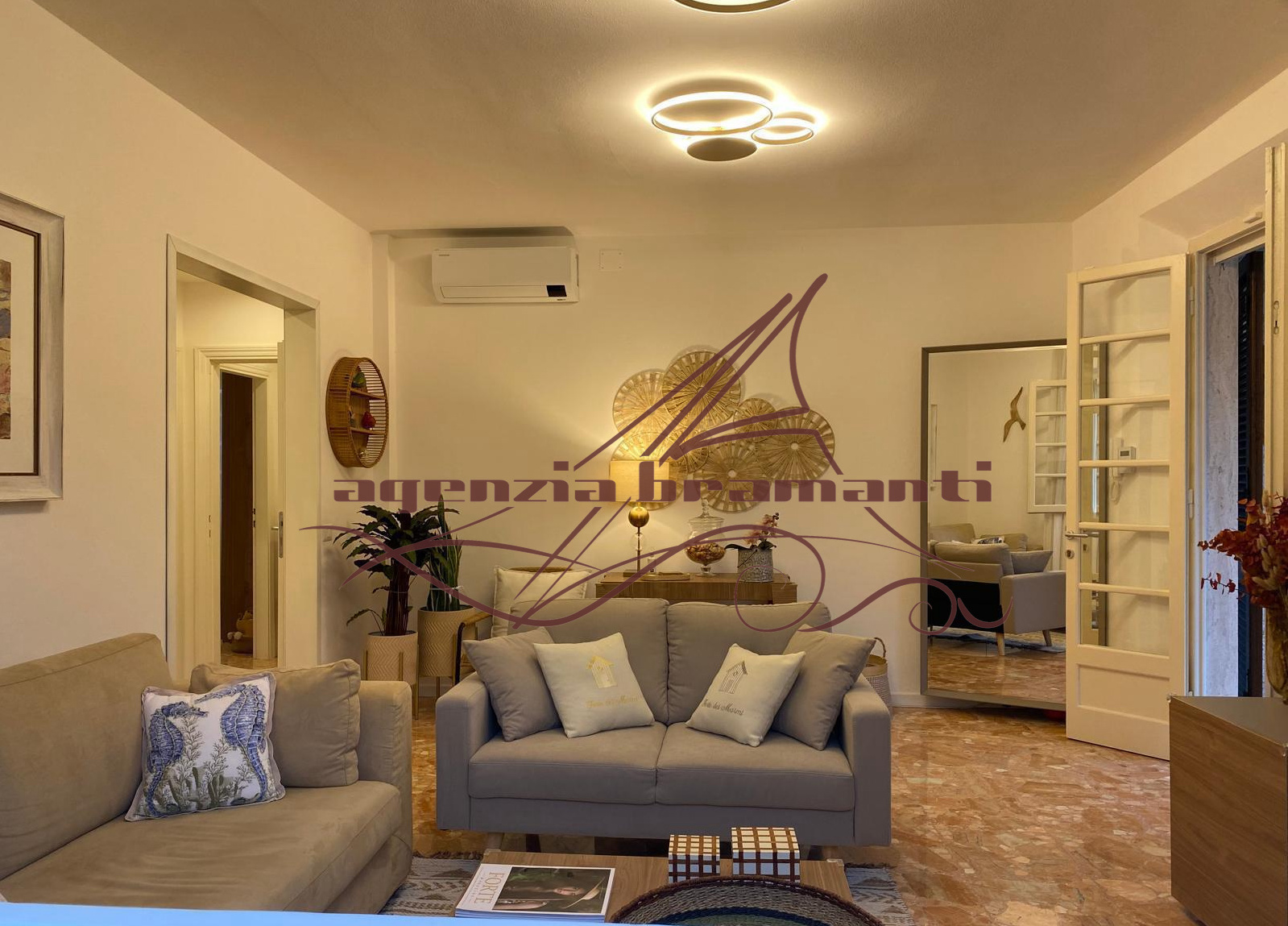 P.T. : salotto, cucina abitabile, due camere di cui una doppia e una matrimoniale, un bagno con doccia e vasca. Un bagno di servizio.